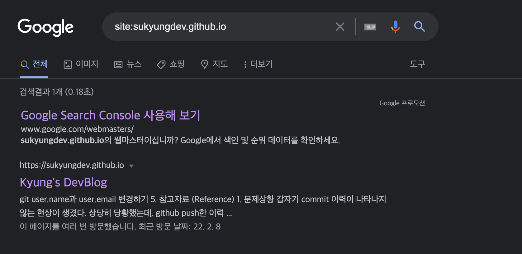 현재 https://sukyungdev.github.io/의 url은 등록되었으나
