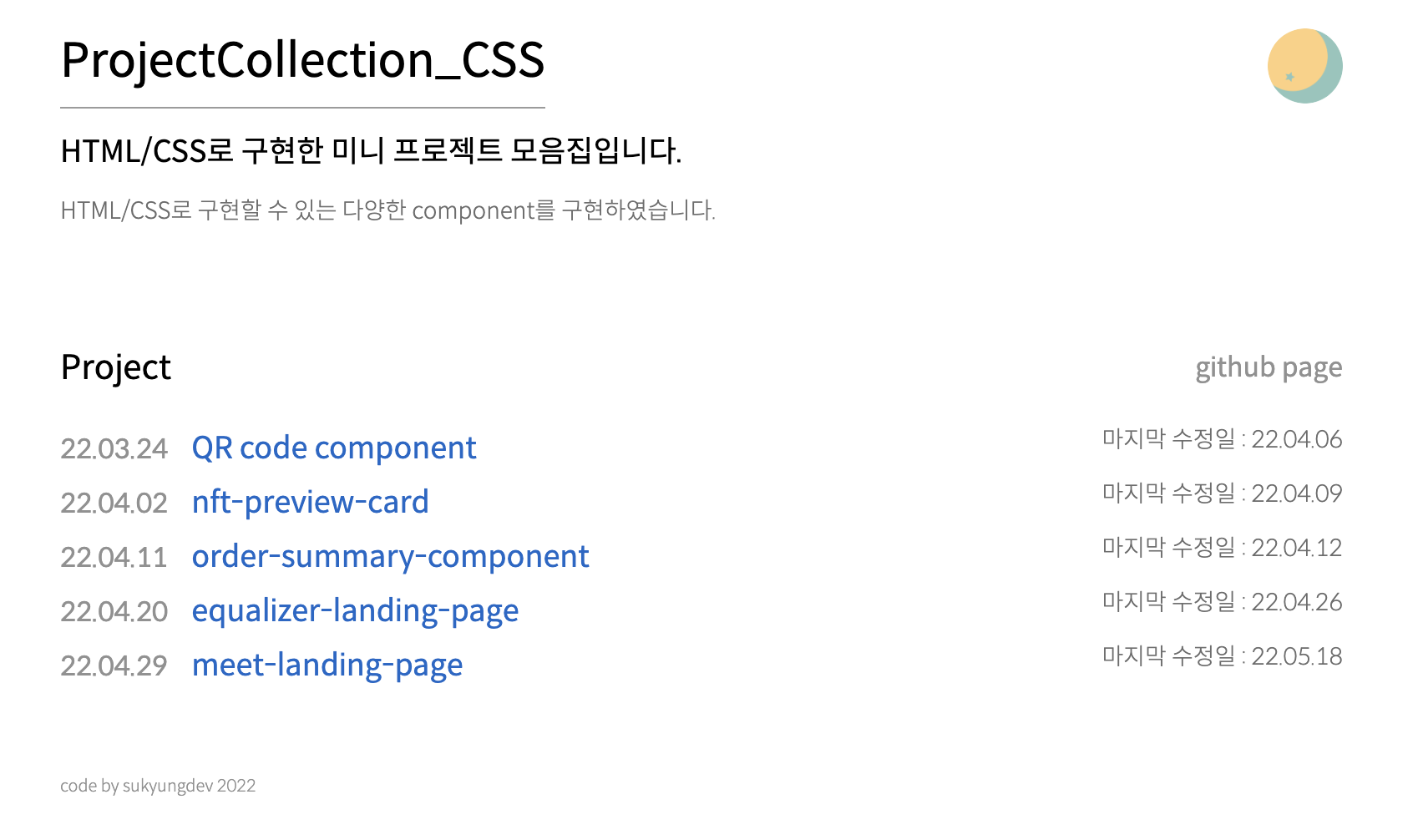 4월에 ProjectCollection_CSS라는 프로젝트를 본격적으로 시작하였습니다. HTML/CSS로 제작한 웹 프로젝트 입니다.